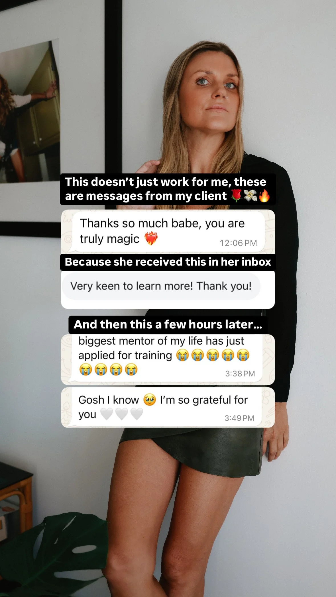 This doesn’t just work for me, my clients have seen instant results too, like signing 2 x $6k clients within one week of a 60 min call with me. This is how quickly you can make changes happen in your life when you commit and take action. I’m so excited for you to try this and I can’t wait to hear the results you create for yourself with this powerful technique.